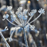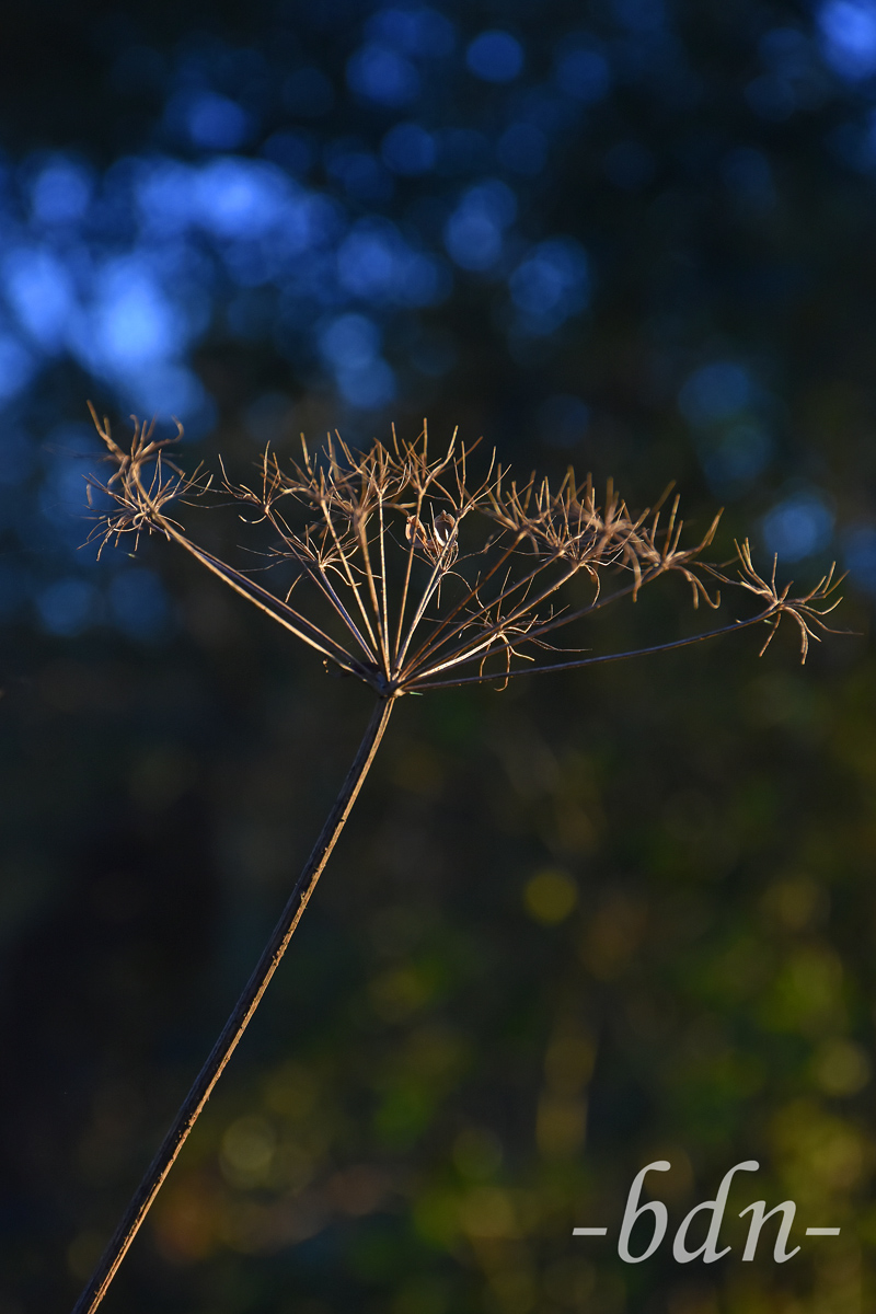 Verdorrter Samenstand eines Doldenblütlers im Gegenlicht