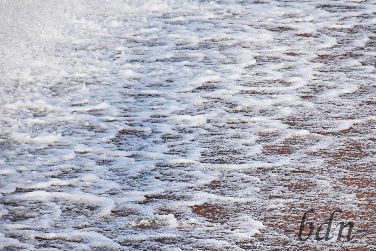 Gischt am Strand mit Lavagestein, Liparische Inseln