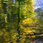 Buntes Herbstlaub spiegelt sich in einem Bach