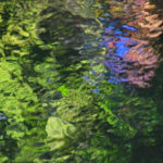 Wellenmuster und Lichtreflexe auf einem schnell fließenden Bach