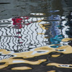 Bootstaue und Spiegelungen von einem Boot im Wasser