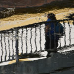 Spiegelungen auf einem Fluss unter grauem Himmel